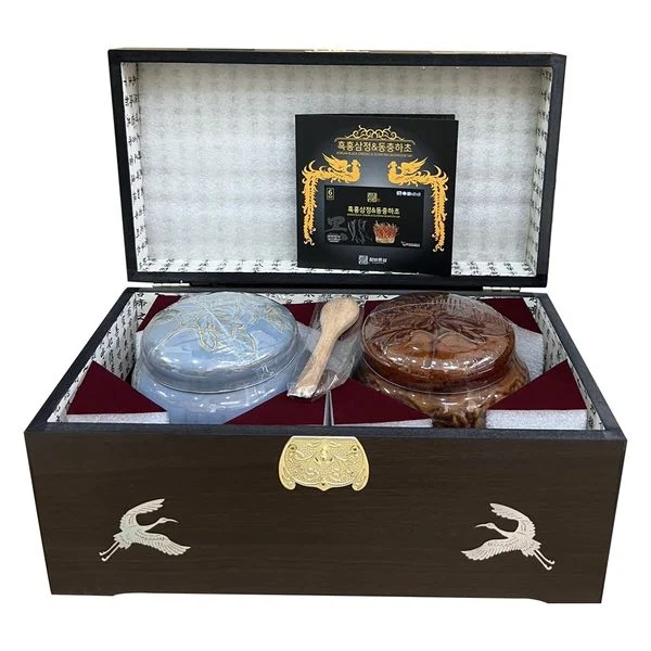 – Chiết xuất hắc sâm 6% (hàm lượng chất rắn 60%, Saponin > 70mg g), đông trùng hạ thảo 11,1%.