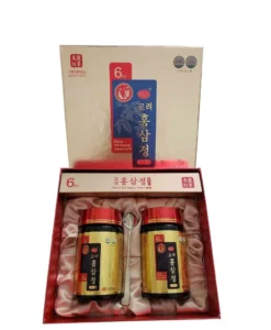 Chất rắn hòa tan tự nhiên 60%, Ginsenoside Rg1 + Rb1 + Rg3 = 6mg/g, Sâm Hàn Quốc 6 năm tuổi, Starch Syrup (đường bắp), Dextrin, Cao cô đặc chiết xuất hỗn hợp thực vật (Xuyên khung, Bạch Thược, Đương qui, Cam thảo, Hoàng kì, Thục địa hoàng, Quế bì), Đường isomalto – oligosaccharide, Syrup đường mật ong, Cao linh chi
