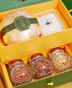 01 hũ thuỷ tinh kỷ tử 01 hũ thuỷ tinh táo đỏ 01 hũ thuỷ tinh đông trùng hạ thảo 01 hộp đường phèn |