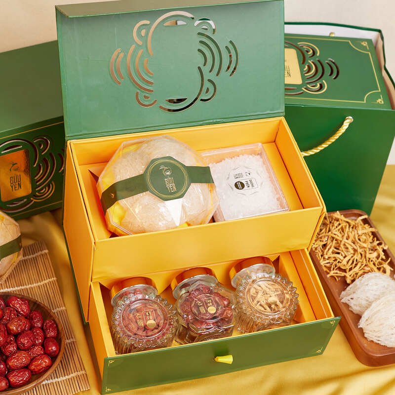 Combo tặng yến sào Phú Quý từ Bửu Yến với thiết kế hộp đơn giản những đầy tinh tế, sang trọng. Combo thể hiện tình cảm chân thành và ý nghĩa, lời chúc sức khoẻ dồi dào, an lành đến người nhận.