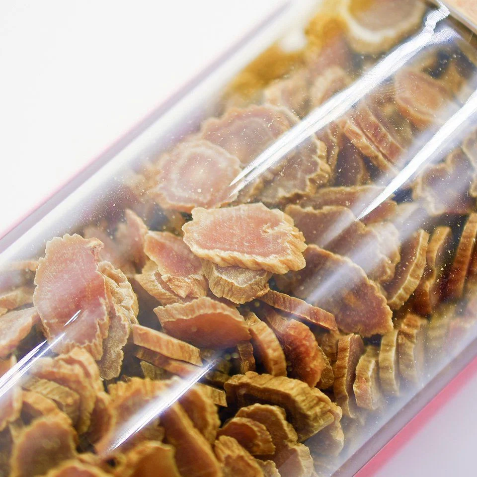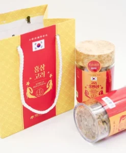 – 100% nhân sâm Geumsan Hàn Quốc qua quá trình hấp sấy thành hồng sâm củ khô nguyên chất, được sấy khô thái lát sẵn, và đóng lọ thủy tinh tiện lợi sử dụng.