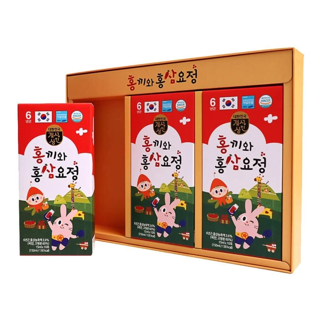 Các thành phần khác: Việt quất, Mai nhung hươu, Sodium citrate, Acid hữu cơ, Siro cyclodextrin, Chất xơ, Đường hoa quả, Nước ép dâu tây, Hỗn hợp nước ép rau, Trái cây táo gai, Canxi, Vitamin C, A, D3, Vitamin nhóm B: B1, B2, B6, B8, B9, B12, Axit folic, Omega 3.