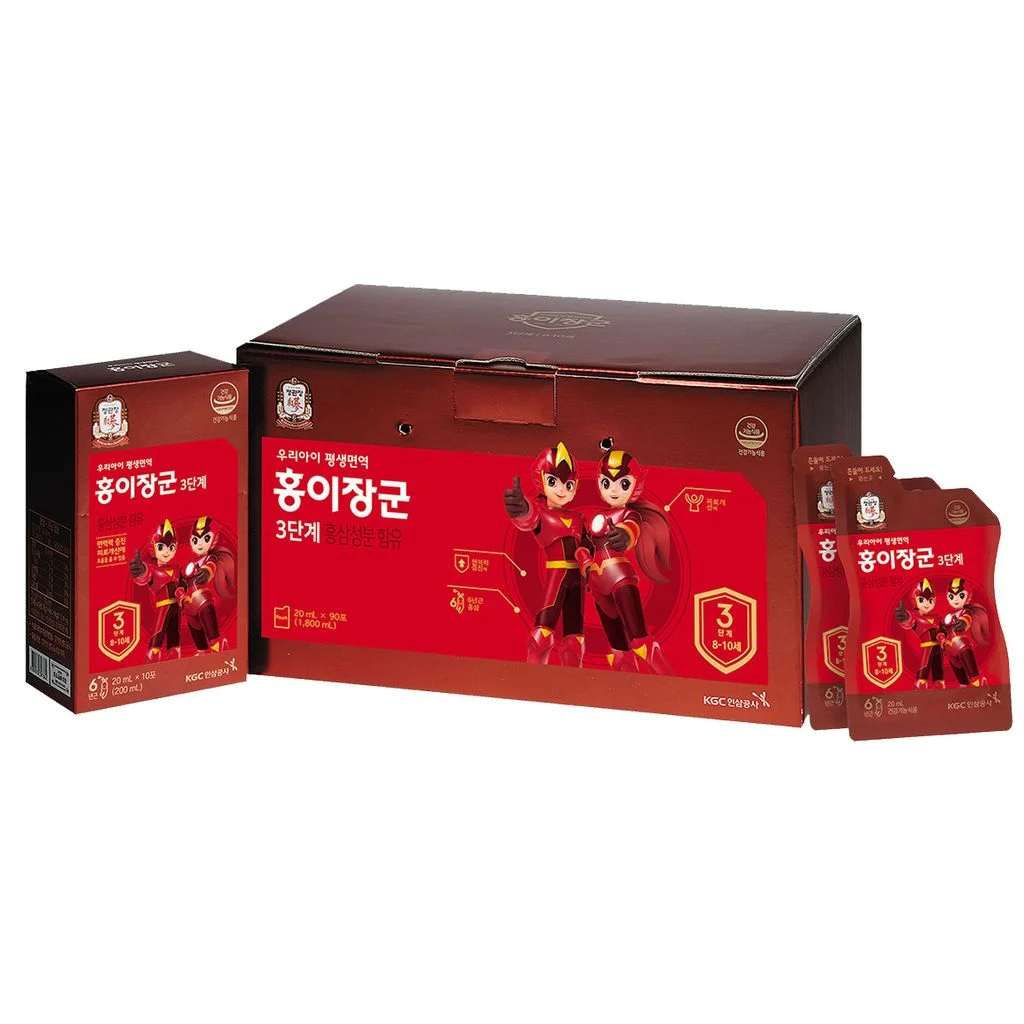 – Hồng sâm đậm đặc 6 năm tuổi nguyên chất, hàm lượng Rg1 + Rb1 + Rg3 5,5mg / g, nhung hươu, nước tinh khiết, hỗn hợp đậm đặc hoa quả tự nhiên lên men, vitamin C, Hương vị sữa chua tự nhiên, vitamin B6 , vitamin B2 , vitamin B1 và các lợi khuẩn có ích cho hệ tiêu hóa….