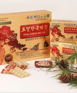 – “Lá thông kim để sản xuất Tinh dầu thông đỏ Hoàng Gia có xuất xứ từ cây thông đỏ Boryeong trên 100 năm tuổi ở vùng núi giáp Bắc Triều Tiên. Đây là nguồn nguyên liệu cao cấp hạng A được chứng nhận của FDA – Cục quản lý Thực phẩm và Dược phẩm số 2012-30. Cứ 2,7kg lá thông kim mới tinh chế được 01 viên tinh dầu thông đỏ Hoàng Gia”