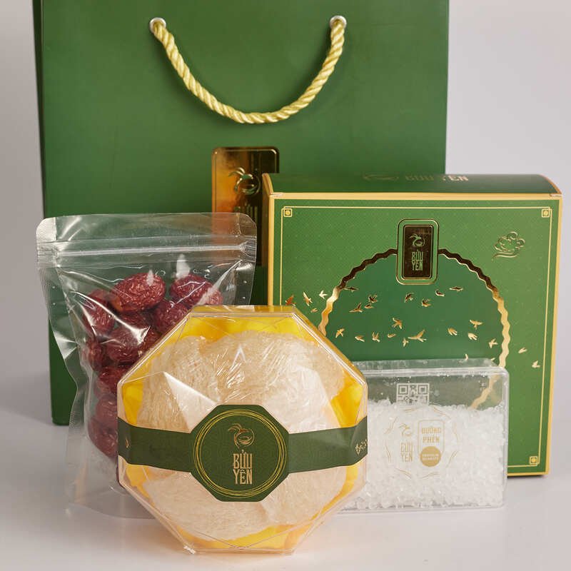 - Sản phẩm yến được đóng gói sang trọng, kết hợp với hộp quà tặng Bửu Yến với thiết kế đơn giản nhưng vô cùng tinh tế và sang trọng, điều này đã tạo nên một món quà sức khoẻ ý nghĩa, thích hợp để làm quà biếu tặng cho những người thân yêu.