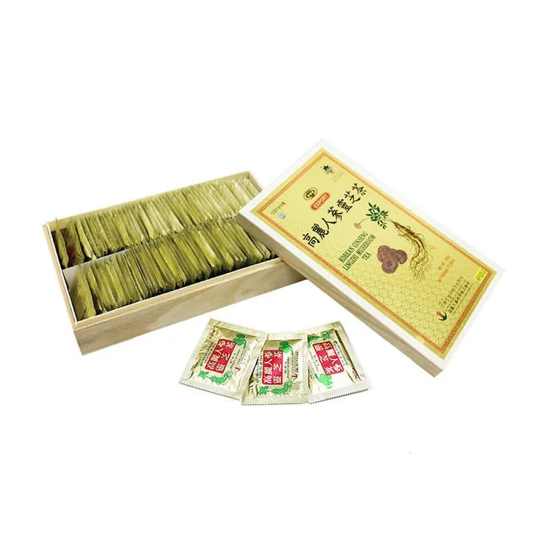 Trong 1 gói túi trà hồng sâm Korean Ginseng Lingzhi Mushroom Tea gồm có hồng sâm, nấm linh chi và các loại thượng dược khác của Hàn Quốc