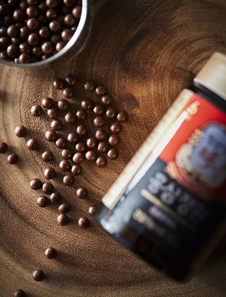 Hồng sâm cô đặc (trồng 6 năm, chất rắn 64%, Ginsenoside Rg1 + Rb1 + Rg3 4 mg / g, Hàn Quốc) 36,15% (tỷ lệ pha trộn nguyên liệu: thân hồng sâm 70%, hồng sâm 30%)